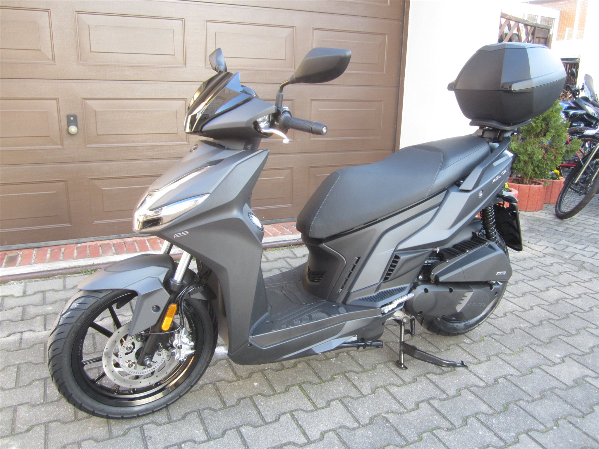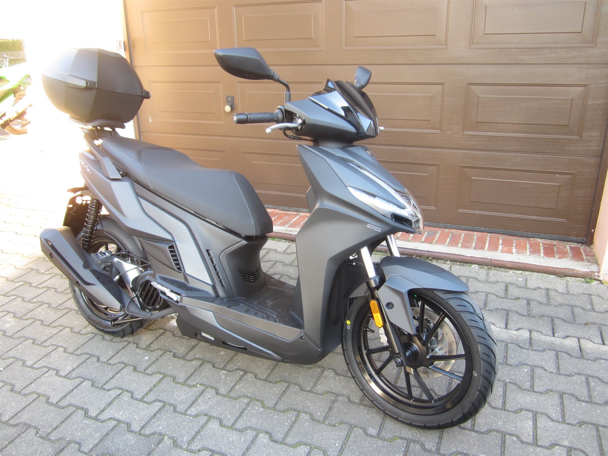 Zur Serienausstattung gehört ein großzügiges Topcase, das zusammen mit dem Stauraum unter der Sitzbank ausreichend Platz für Helm, Einkauf oder Sporttasche bietet. Die Voll-LED-Beleuchtung sorgt nicht nur für gute Sichtbarkeit, sondern unterstreicht auch den modernen Auftritt des Rollers.