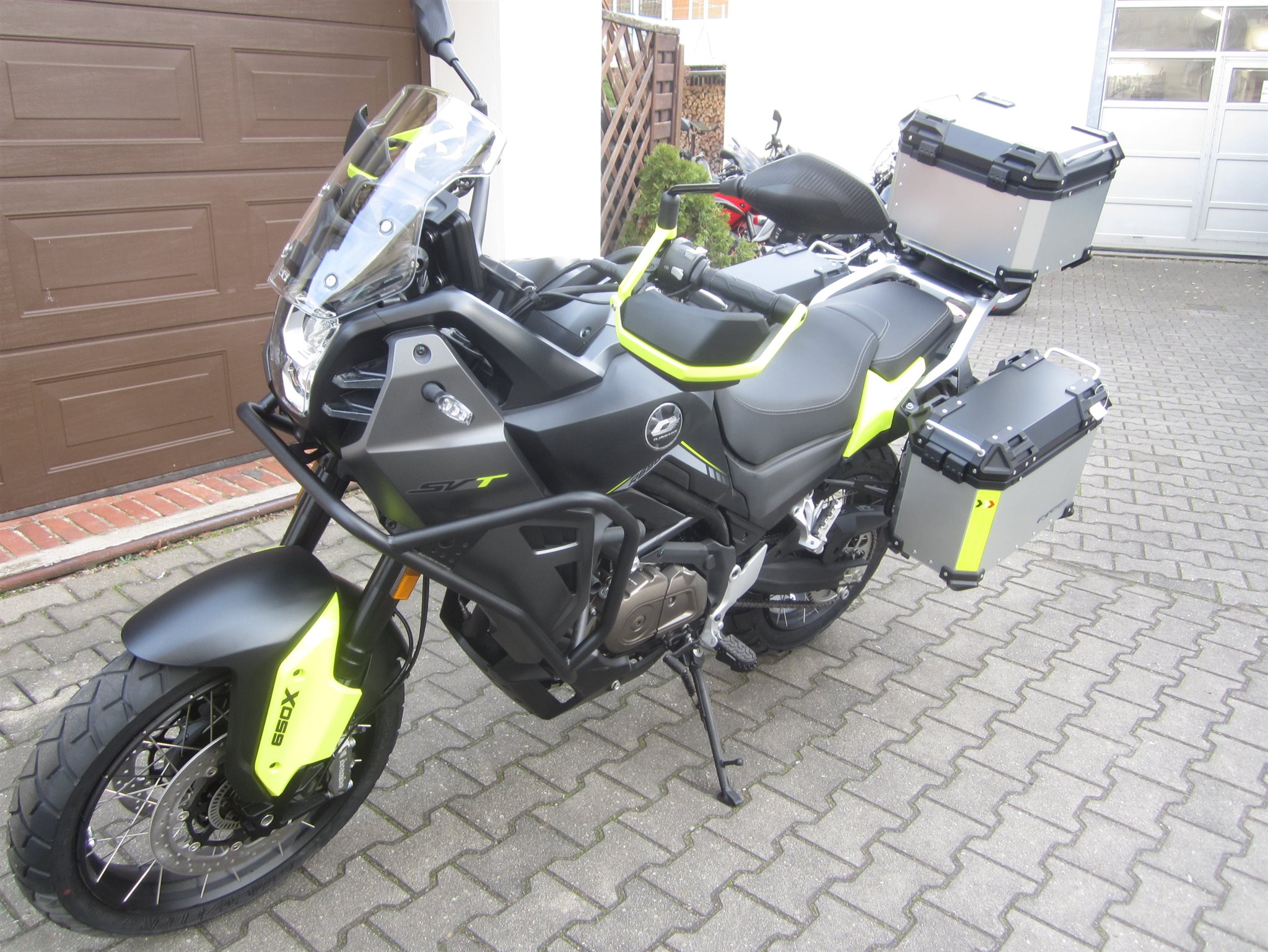 Die SVT 650 X ist das Adventure-Bike für Alltag und Tour. Ihr kraftvoller 645 cm V2-Motor leistet 76,2 PS und 65 Nm und sorgt für souveränen Fahrspaß bis 185 km/h. Für Sicherheit und Kontrolle sorgen BREMBO Scheibenbremsen mit ABS sowie ein stabiles Fahrwerk mit Upside-Down-Gabel. Mit 19-Zoll-Vorderrad, 20-Liter-Tank und 795 mm Sitzhöhe ist sie bereit für jedes Abenteuer optional auch mit A2-Drosselung (35 kW).